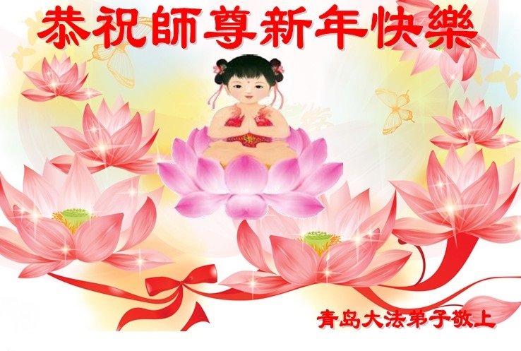 山東青島一大法弟子恭祝慈悲偉大的師尊新年快樂!