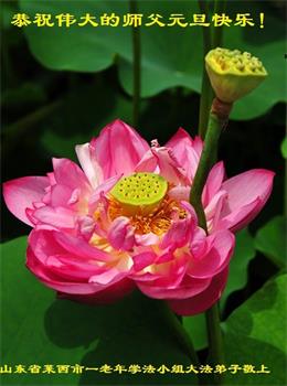 山東省青島市萊西市一老年學法小組大法弟子恭祝偉大的師父元旦快樂!