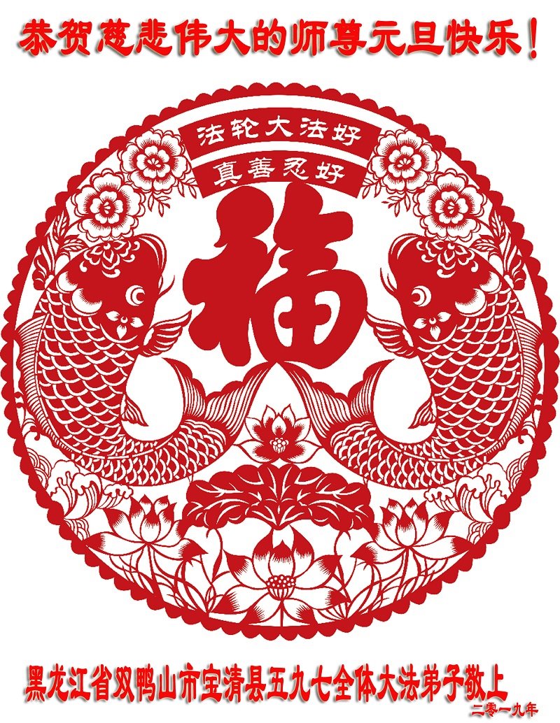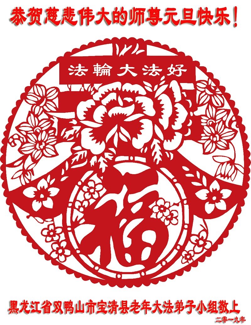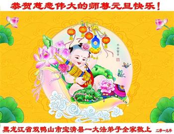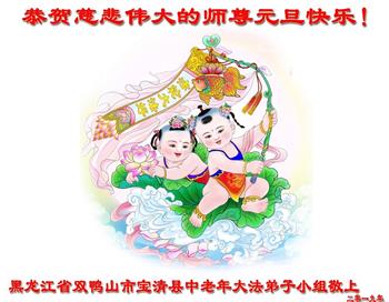 黑龍江雙鴨山寶清縣大法弟子恭祝慈悲偉大的師尊元旦快樂!