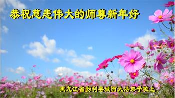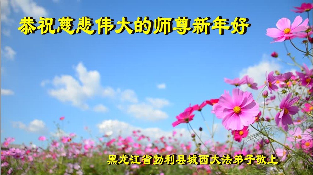 黑龍江省勃利縣種羊場大法弟子問候師尊:恭祝慈悲偉大的師尊新年快樂!