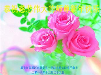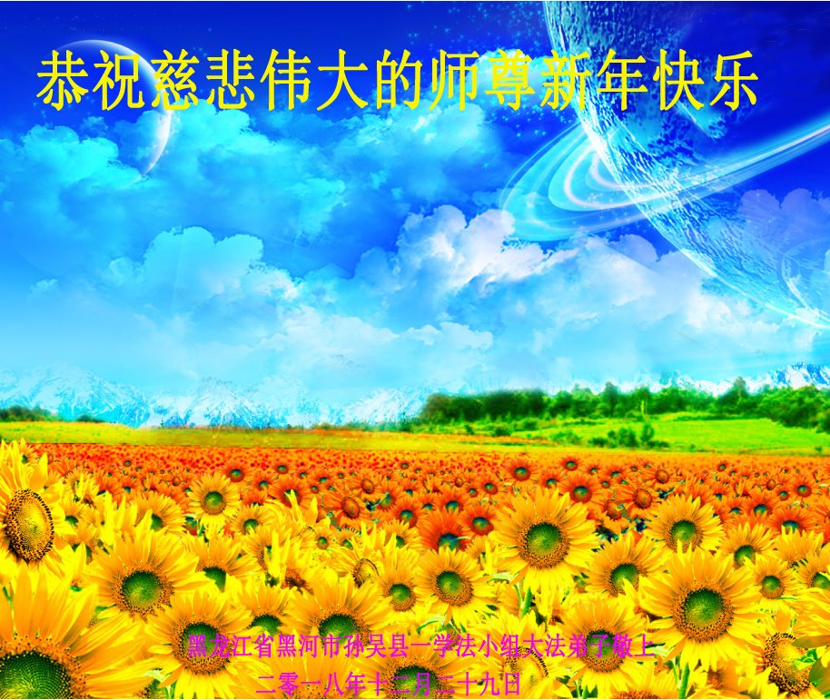 黑龍江省黑河市孫吳縣一學法小組全體大法弟子恭祝師父新年快樂!