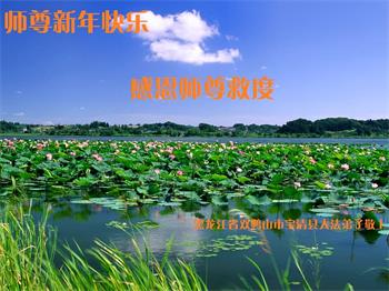 慈悲偉大的師尊您好!我們一家四口大法弟子無比感恩師尊的慈悲救度。在新的一年裏,我們一定謹記師父的教誨,以法為師,紮紮實實的做好師父交代的三件事,多學法,多救人,兌現自己的史前誓約,圓滿隨師還。謝謝師父!謝謝師父!