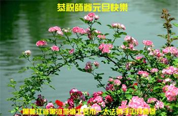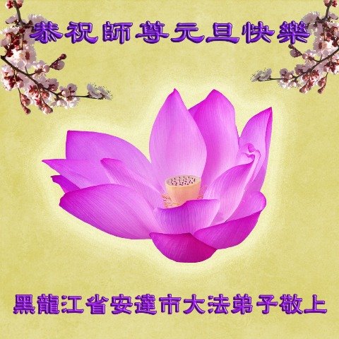 您好!在您時時事事的保護下,我們又走過了一年,在這一年裏,在大法的指引下有提高,有收穫,有成熟,但是也有很多的不足,我們一定會用法來衡量一切,精進不停,做好三件事,走正大法路,用豐厚的成果回報師尊。祝師尊元旦快樂!