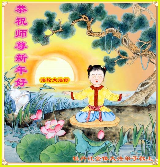 在新年來臨之際,弟子們向我們想念的恩師恭賀新年!慈悲偉大的師父啊!是您,把我們這些迷茫的孩子從地獄中撈起洗淨,又將宇宙的法理「真善忍」傳給了我們,使我們走上了返本歸真的金光之路,喚醒了我們生命的本真,弟子們無限感恩師尊的救度之恩!在新的一年裏,我們幾位老年大法弟子要實修真修,互相鼓歷、互相幫助,比學比修,不辜師尊對我們的期望,手牽手共同跟師尊返回我們的家園!弟子們祝願最偉大神聖的師尊永遠快樂!