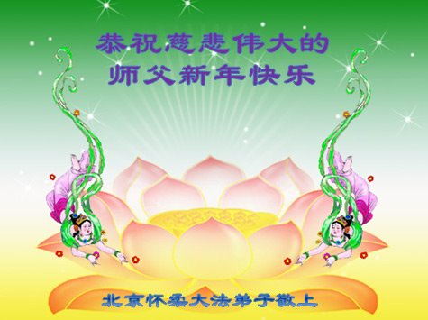北京大法弟子恭祝慈悲偉大師尊新年快樂!