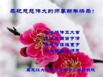 黑龍江大慶市東風新村學法小組恭祝慈悲偉大的師尊新年快樂!