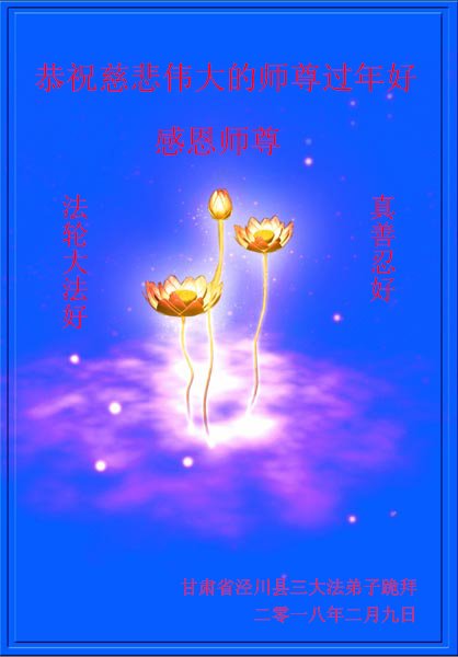 又是一年新年到,玉門市玉門鎮大法弟子給慈悲偉大的師父拜年:師父過年好!弟子想念您!感謝師父慈悲苦度,弟子叩拜師父!