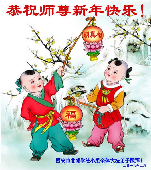 陝西省西安北郊學法小組全體大法弟子恭祝師尊新年快樂!
