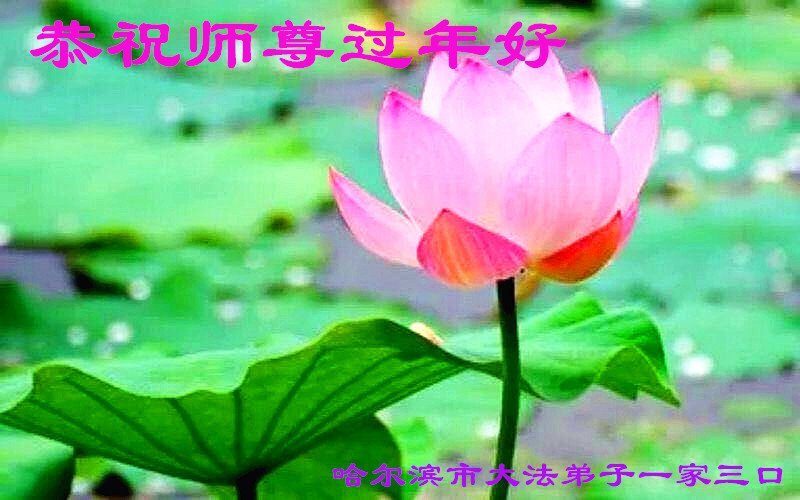 黑龍江省哈爾濱大法弟子淨蓮一家恭祝慈悲偉大的師尊新年快樂!