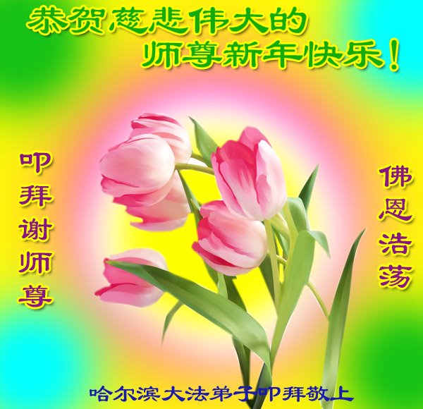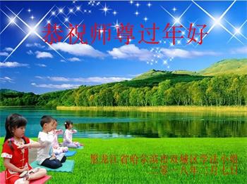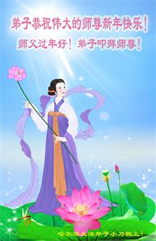 黑龍江省哈爾濱大法弟子給慈悲偉大的師父拜年:師父過年好!