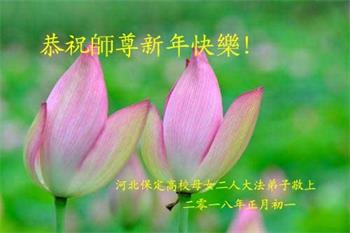 在全世界華人傳統節日新年即將來臨之際,我們在大法發祥地──中國大陸長春,恭祝慈悲偉大的師尊新年快樂!請師尊放心,在正法修煉的路上,我們一定不辜負您的期望,努力做好三件事,助師正法,把大法的美好傳遞給更多的世人,救度更多眾生。