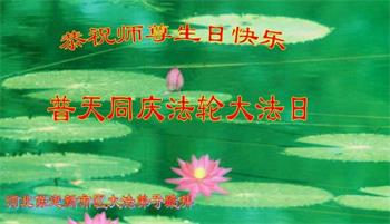 河北省保定蓮池區五個學法小組大法弟子祝慈悲偉大的師尊生日快樂!