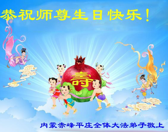 內蒙古自治區赤峰平莊全體大法弟子恭祝師尊生日快樂!