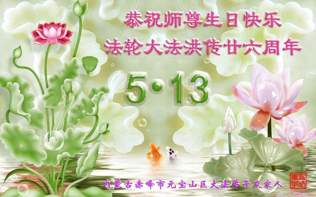 內蒙古自治區赤峰市元寶山區大法弟子恭祝慈悲偉大的師尊生日快樂!慶祝法輪大法日!