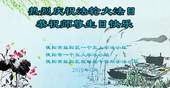 四川德陽三個學法小組恭賀法輪大法日!恭祝師尊生日快樂!