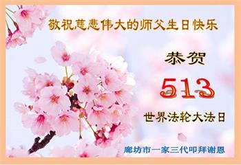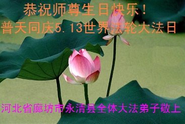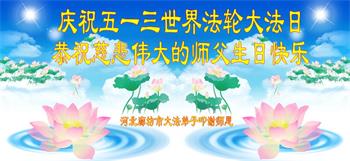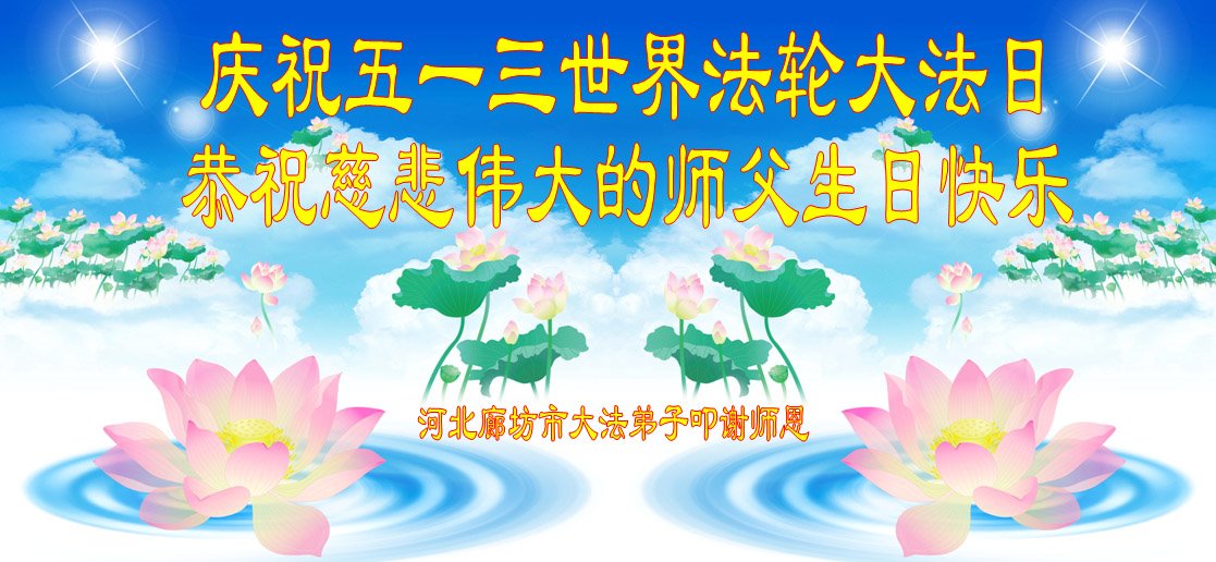 河北廊坊市大法弟子賀五一三世界法輪大法日!恭祝師父生日快樂!