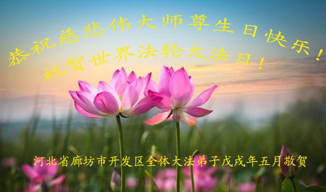 河北廊坊開發區全體大法弟子恭祝偉大師尊生日快樂!恭賀世界法輪大法日!