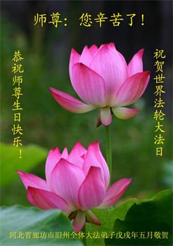 河北廊坊北旺鄉全體大法弟子恭祝師尊生日快樂!恭賀法輪大法日!