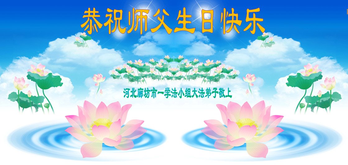 河北廊坊市一學法小組大法弟子恭祝師父生日快樂!弟子想念師父!