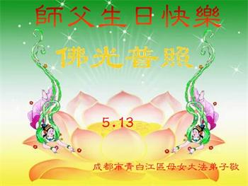 四川省成都市大法弟子恭祝慈悲偉大的師父生日快樂!