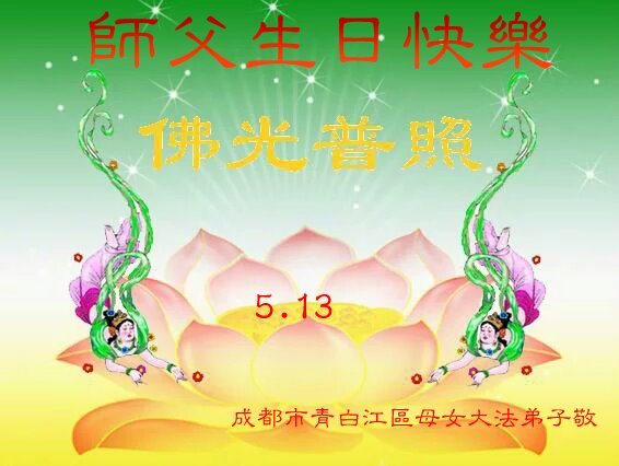 四川省成都市青白江區母女大法弟子恭祝師父生日快樂!