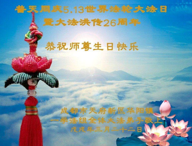 四川省成都市一學法小組大法弟子恭祝師父生日快樂!暨大法洪傳二十六週年!