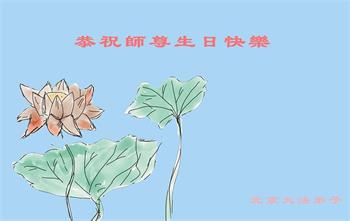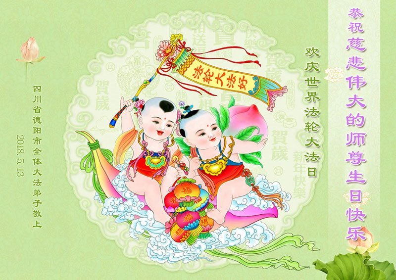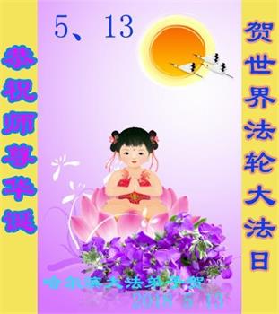 我與母親同修和家人,恭祝慈悲偉大的師尊生日快樂!叩謝師尊。恭祝慈悲偉大的師尊「五﹒一三」華誕!普天同慶世界法輪大法日!師尊您辛苦了!感恩您的洪恩普度,慈悲威嚴!正法輝煌!弟子叩拜恭頌師尊!謝謝師父對弟子慈悲呵護,無數次的救命之恩!母親同修祝慈悲偉大的師父5﹒13生日快樂!師父辛苦了!感謝師父的苦心救度!感謝師父給了我第二次生命!恭祝師尊生日快樂!祝賀2018年5﹒13世界法輪大法日,弟子一定緊隨師尊正法的腳步,時時向內找,修好自己,多救人,讓師父少操心,師父您辛苦了,謝謝師父的慈悲救度和對我家人的呵護,弟子叩拜師父。實修、玉傑、新宇恭祝世界法輪大法日,恭祝師尊生日快樂!普天同慶、同祝、同頌5﹒13!弟子跪拜師尊!叩拜師父,您辛苦了!
