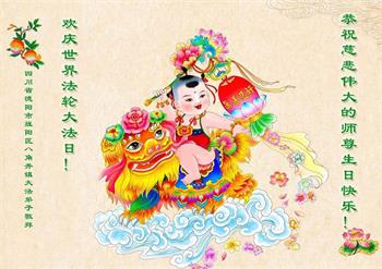 四川省德陽市旌陽區八角井鎮大法弟子恭祝慈悲偉大的師尊生日快樂!