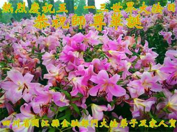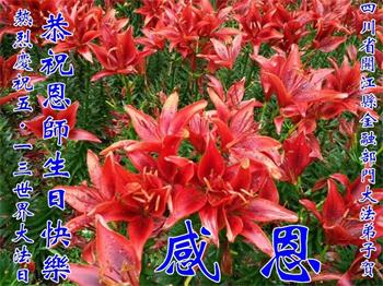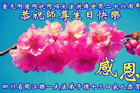四川省達州市開江縣金融部門大法弟子熱烈慶祝五﹒一三世界大法日!恭祝恩師生日快樂!