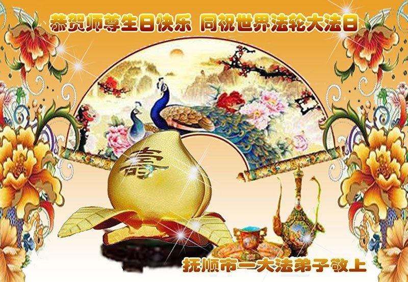 遼寧省撫順一老年大法弟子恭賀法輪大法日!恭祝師尊生日快樂!