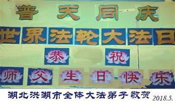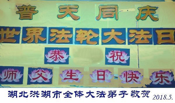 湖北省荊州市洪湖市全體大法弟子祝賀法輪大法洪傳世界!恭祝偉大慈悲師尊生日快樂!