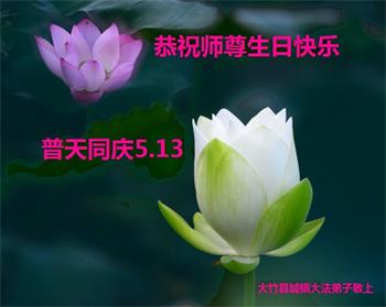 四川省達州市大竹縣城鎮大法弟子恭祝師尊生日快樂!普天同慶世界法輪大法日!