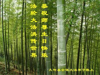 四川省達州市大竹縣全體大法弟子恭祝師尊生日快樂!普天同慶世界法輪大法日!