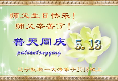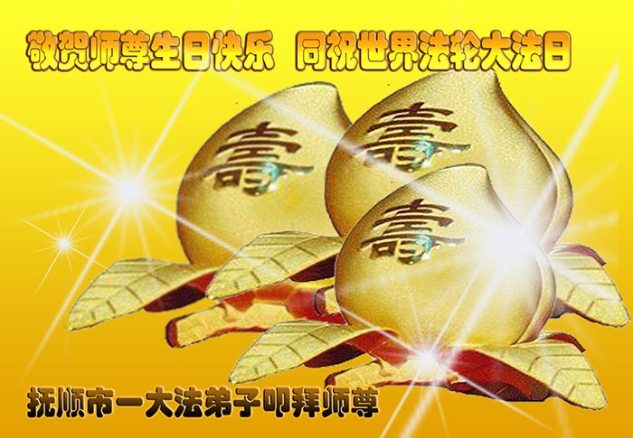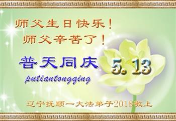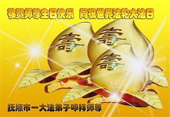 遼寧撫順一大法弟子恭賀師尊華誕暨第十九屆世界法輪大法日!