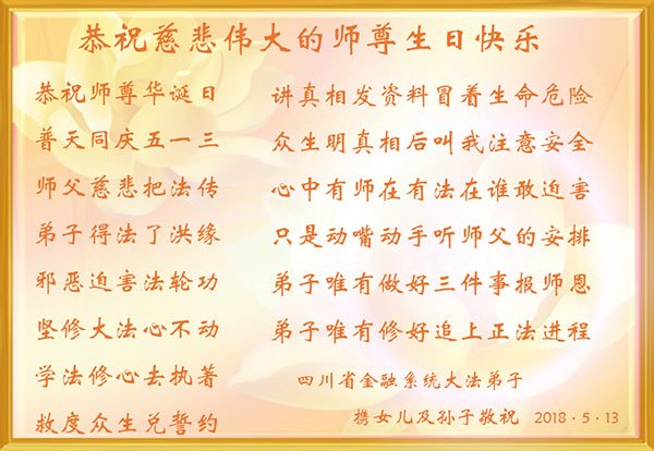 四川金融系統大法弟子恭祝師父生日快樂!
