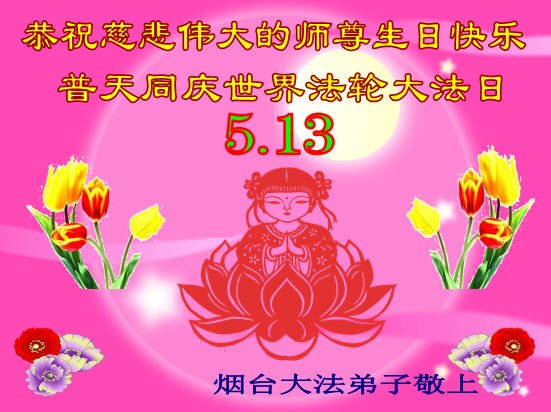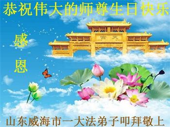 山東威海一大法弟子恭祝師尊生日快樂!普天同慶世界法輪大法日!