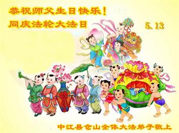 四川省德陽市中江縣倉山全體大法弟子恭祝慈悲偉大的師父生日快樂!普天同慶法輪大法日!師父好!師父辛苦了!我們全體大法弟子感恩師父慈悲苦度!