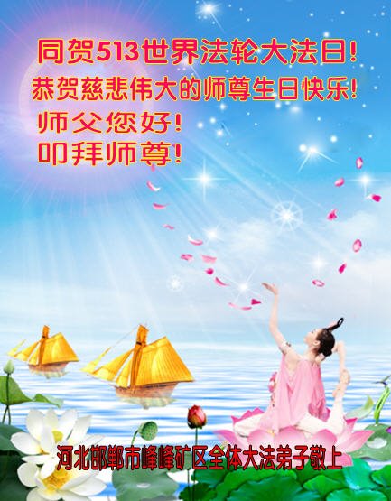 河北邯鄲市峰峰礦區全體大法弟子同賀法輪大法日!恭祝師尊生日快樂!