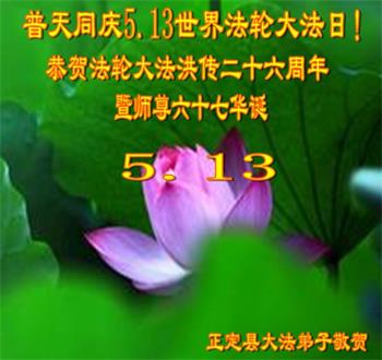 河北正定大法弟子恭賀5.13世界法輪大法日!恭祝師父生日快樂!