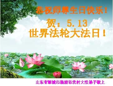 山東省棗莊市嶧城區全體大法弟子恭祝慈悲、偉大的師尊生日快樂!恭賀世界法輪大法日!