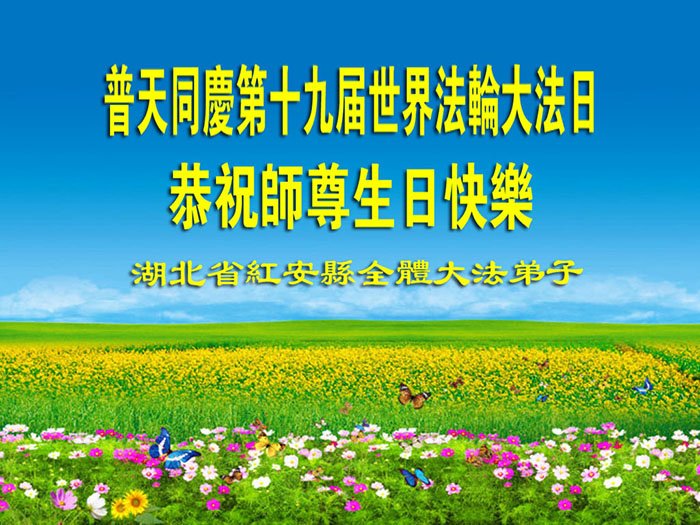 湖北省黃岡市紅安縣全體大法弟子恭賀師尊華誕暨世界法輪大法日!