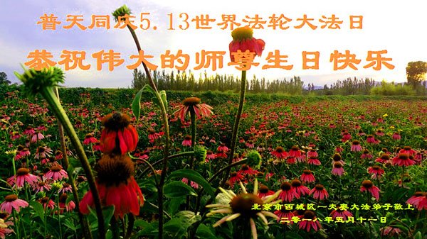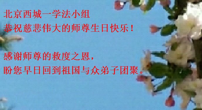 北京市西城區一夫妻大法弟子恭祝師尊生日快樂!普天同慶世界法輪大法日!