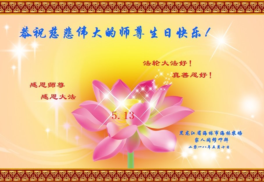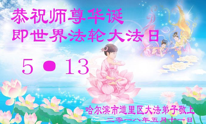 黑龍江省哈爾濱道裏區大法弟子恭祝師尊華誕即世界法輪大法日!感恩師尊慈悲苦度!