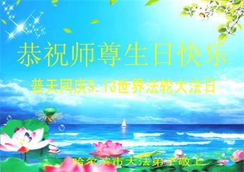 黑龍江省哈爾濱大法弟子恭祝慈悲偉大的師尊生日快樂!
