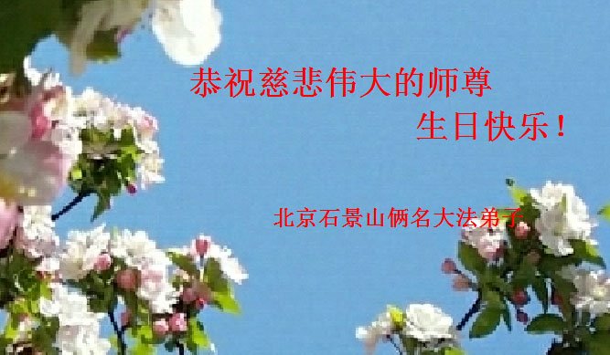 北京石景山兩名大法弟子恭祝慈悲偉大的師尊生日快樂!