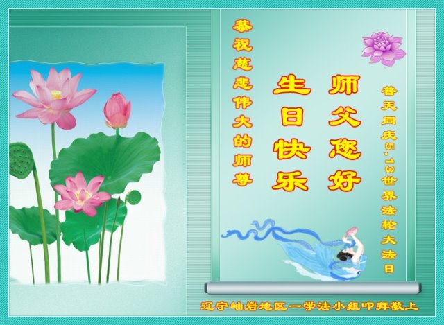 遼寧省岫岩地區一學法小組大法弟子恭祝師父生日快樂!