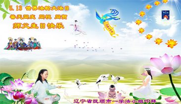 遼寧省撫順市一學法小組大法弟子恭祝師父生日快樂!慶祝世界法輪大法日!