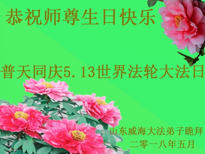 山東威海一大法弟子恭祝師尊生日快樂!普天同慶世界法輪大法日!