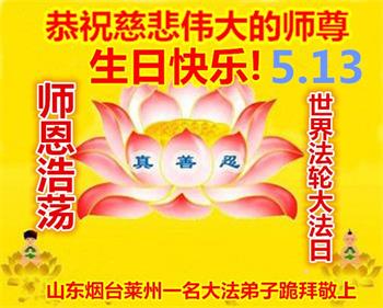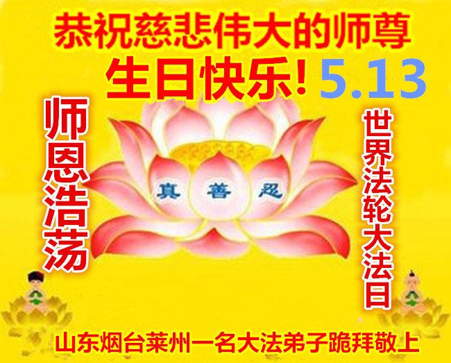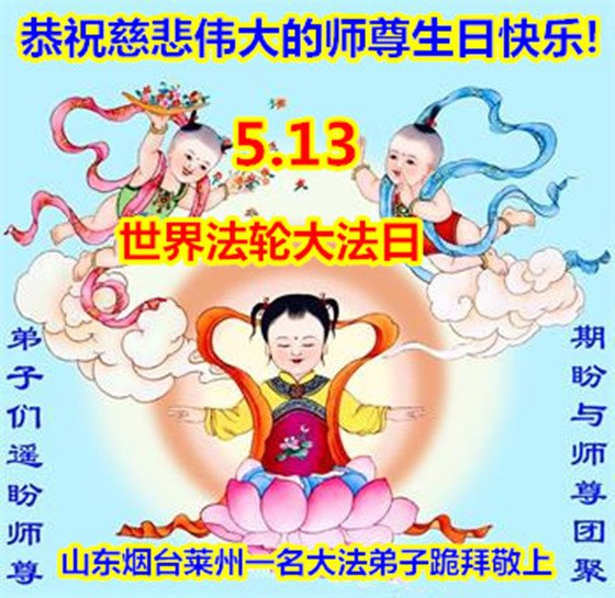 山東煙台萊州一名大法弟子恭賀世界法輪大法日暨師尊華誕!