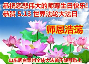 山東煙台萊州全體法弟子恭賀世界法輪大法日暨師尊華誕!